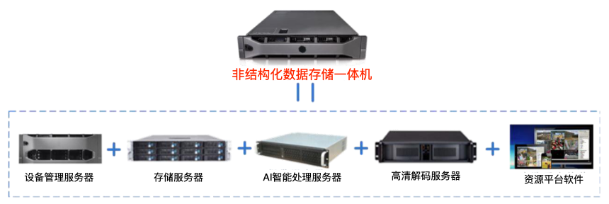 冠興非結構化數據存儲一體機展現出驚人的高性價比特點。它集設備(bèi)管理服務器、存儲服務器、AI智能處理服務器、高清解碼服務器及數據資源平台軟件於(yú)一身,花一台機器的錢,實現豐富而多樣化的功能。